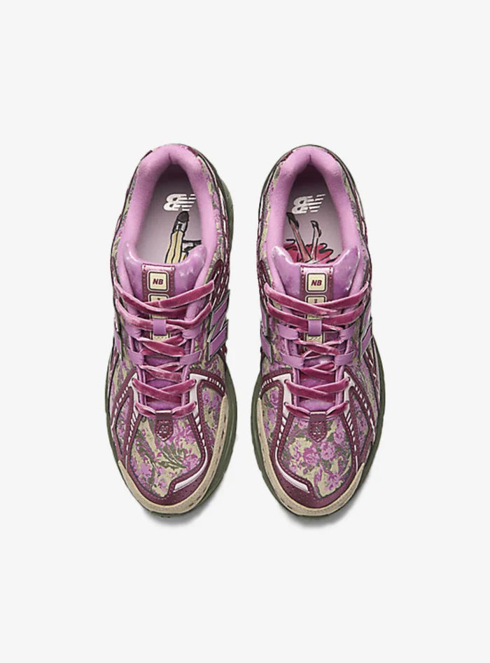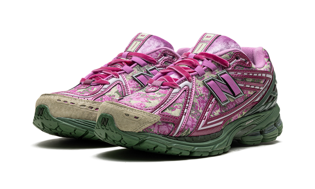 Le scarpe New Balance 1906R Jack Harlow si distinguono per la tomaia in cotone, impreziosita da una raffinata stampa floreale che ricorda un delicato ricamo, avvolgendo la superficie con eleganza. I dettagli in pelle rosa aggiungono un tocco di raffinatezza, mentre il verde intenso della gabbia del tallone e dell'intersuola crea un contrasto vibrante, esaltando il motivo della rosa presente nel design. I lacci e la linguetta in velluto impreziosiscono ulteriormente il modello, aggiungendo una sensazione di lusso e morbidezza ideale sia per il comfort che per lo stile. Questa combinazione di elementi crea una sneaker che non solo conserva la sua natura sportiva, ma eleva l'intera estetica a un livello superiore di eleganza, rendendola perfetta per ogni situazione, dalle passeggiate in città alle occasioni più casual.